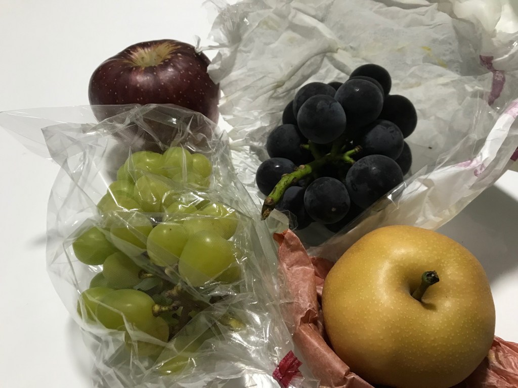 ピオーネ、りんご、梨そしてシャインマスカット。美味しいそうな物が取れました。