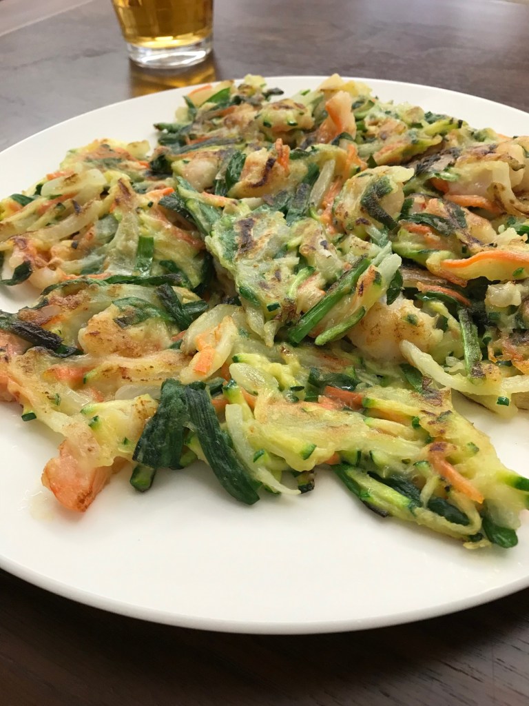 I was invited to try my hand at two different dishes: Korean nori rolls (kimba) and seafood pancakes.